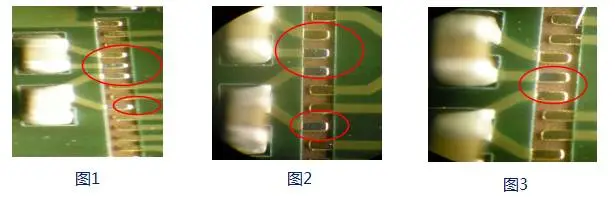 问题:客户反馈PZ2177AC机型产品,经过清洗后与电容相连的3个焊盘会发白(见下图),导致COB邦定时焊金线焊不上。且客户反映经检测发白的焊盘上主要成分为锡。